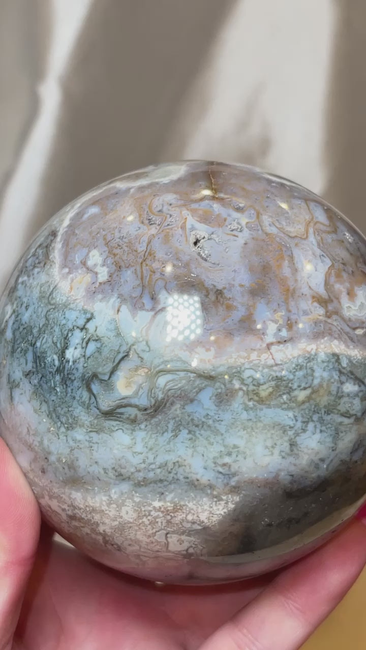1- AAA grade Ocean Jasper XL sphere (small pyrite inclusion)