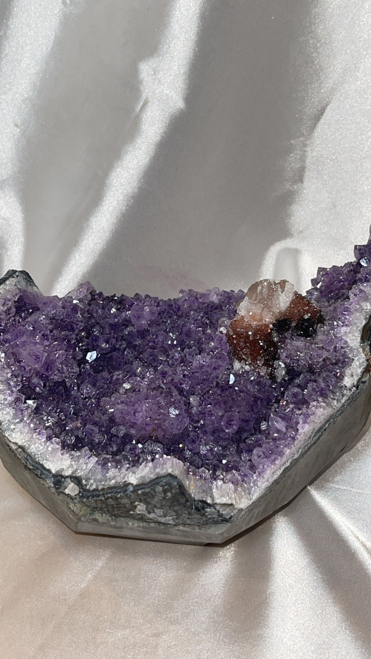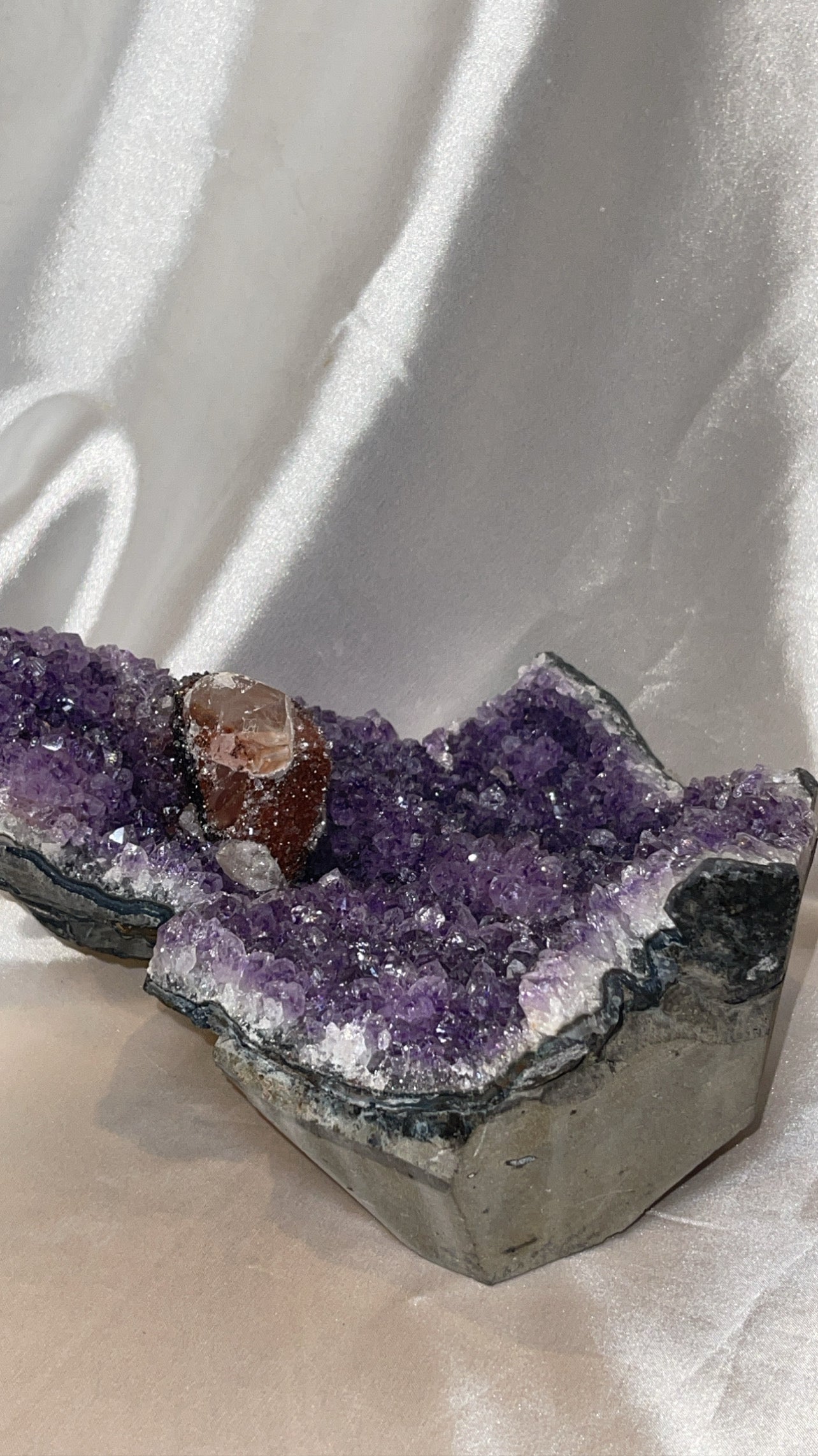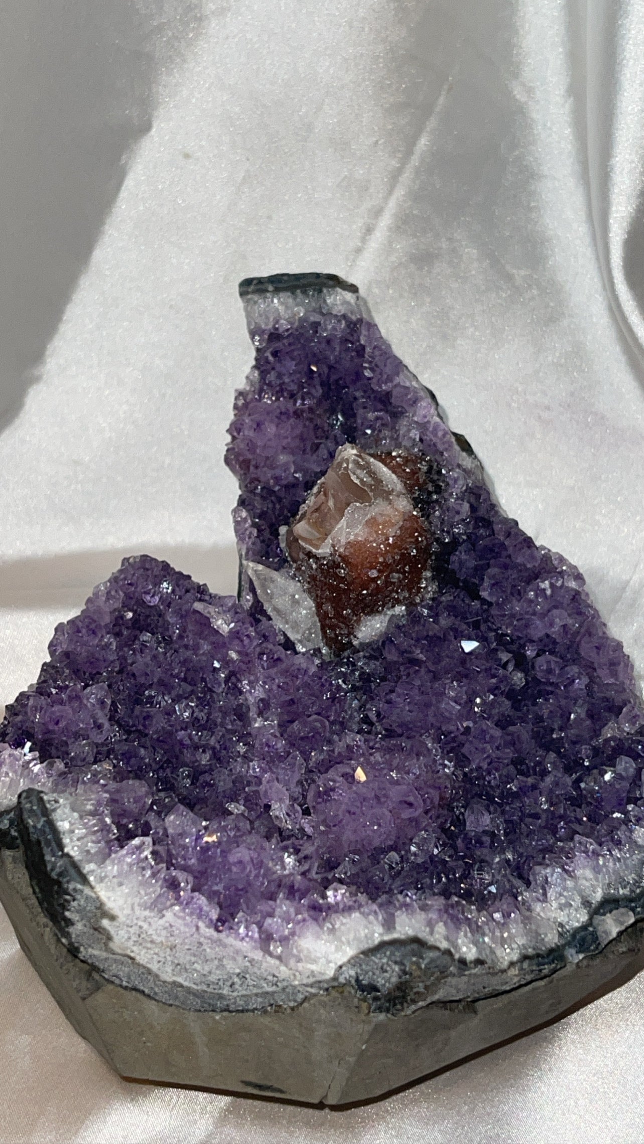 1- XXL high quality Amethyst Geode display with druzy Calcite