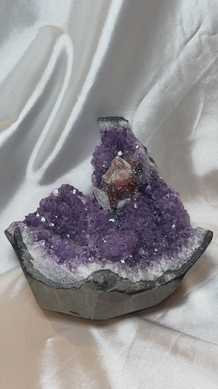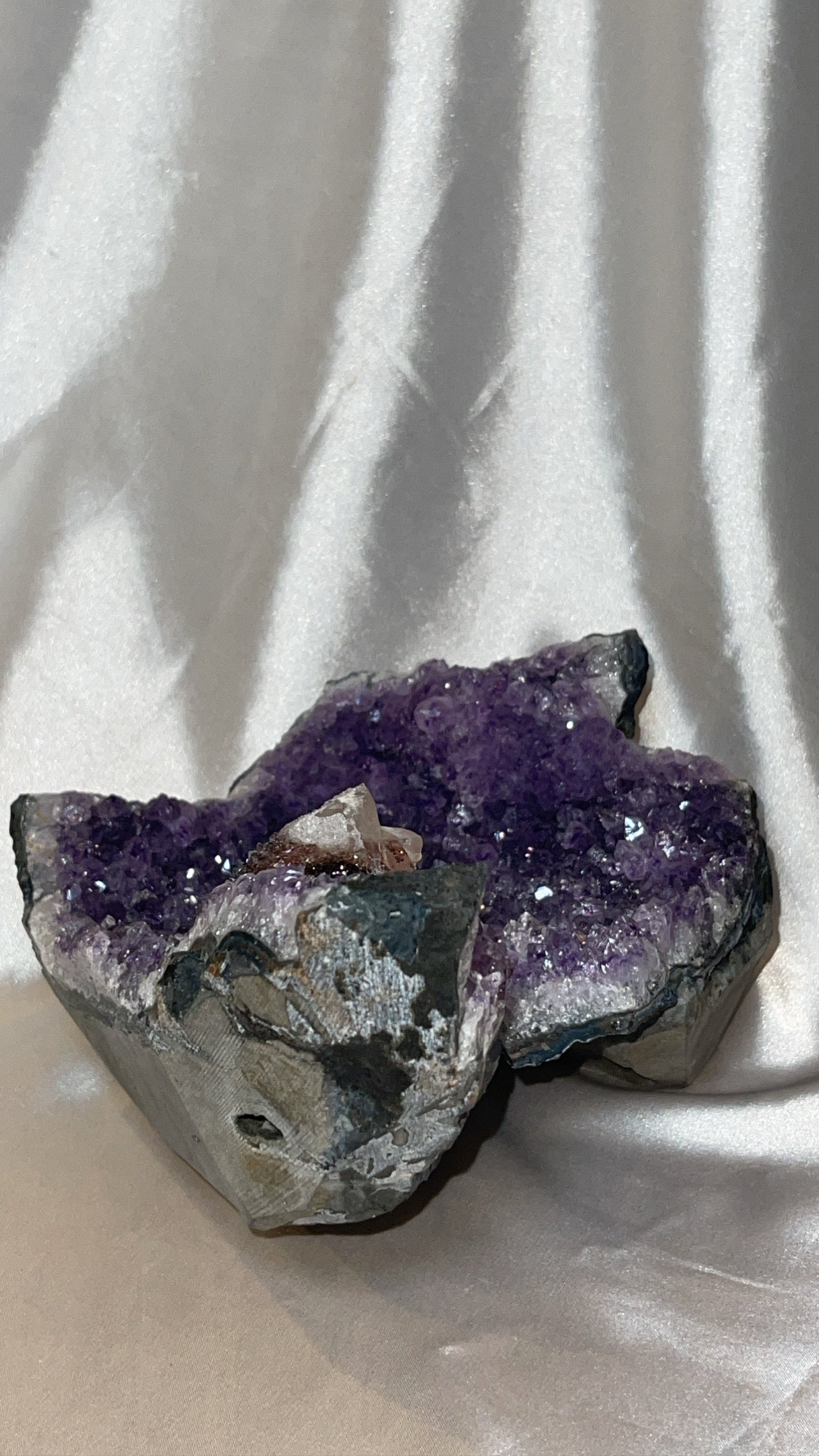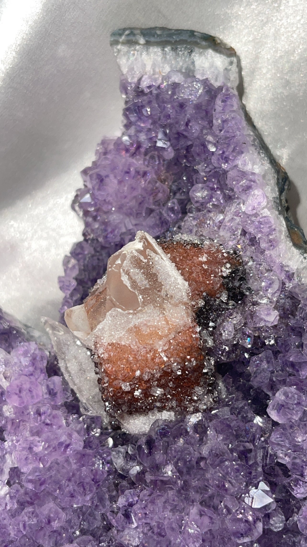1- XXL high quality Amethyst Geode display with druzy Calcite