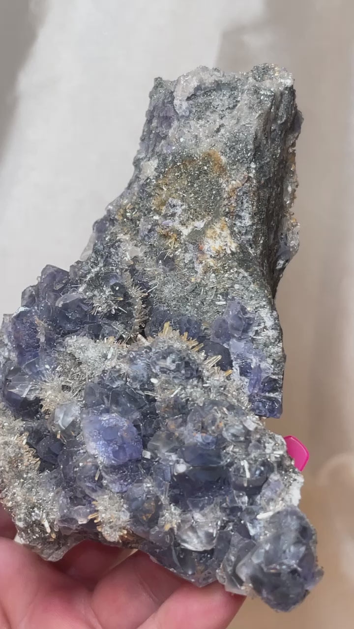 1- Fujian Indigo Fluorite with needle quartz specimen