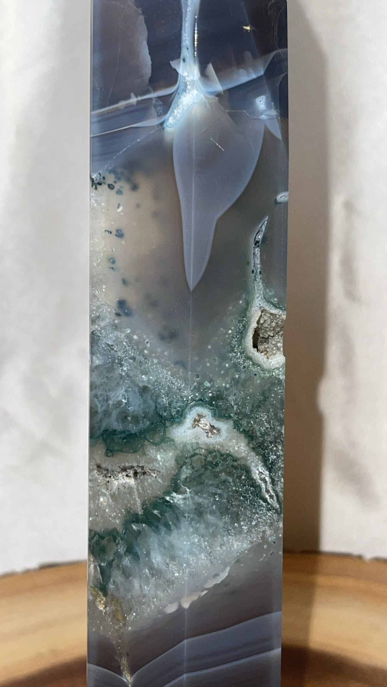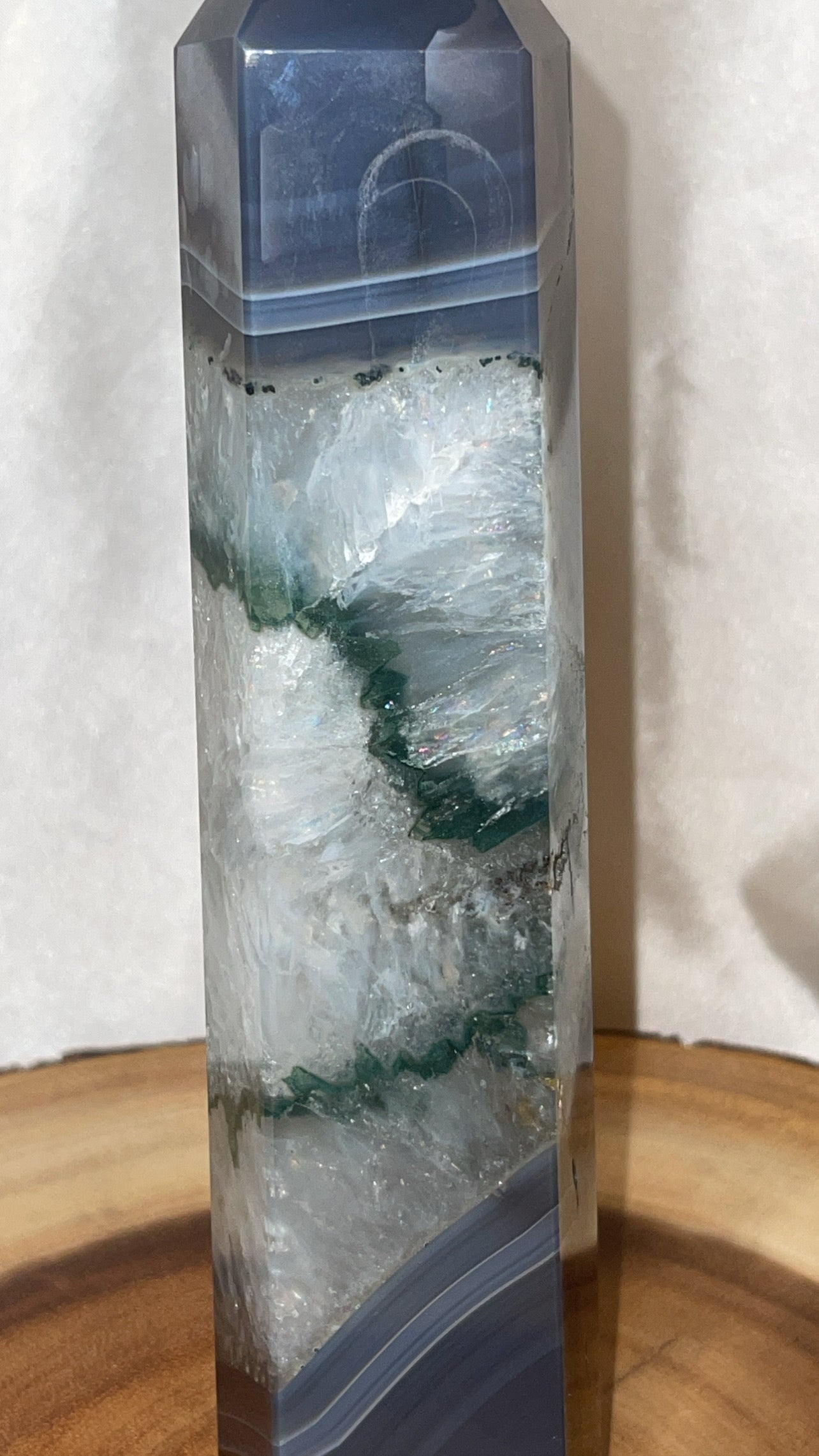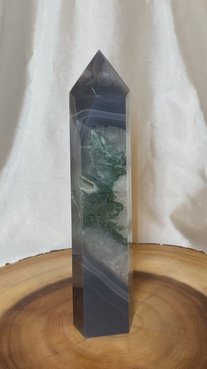 1- Chlorite Quartz with Banded Agate Large Tower with Druzy