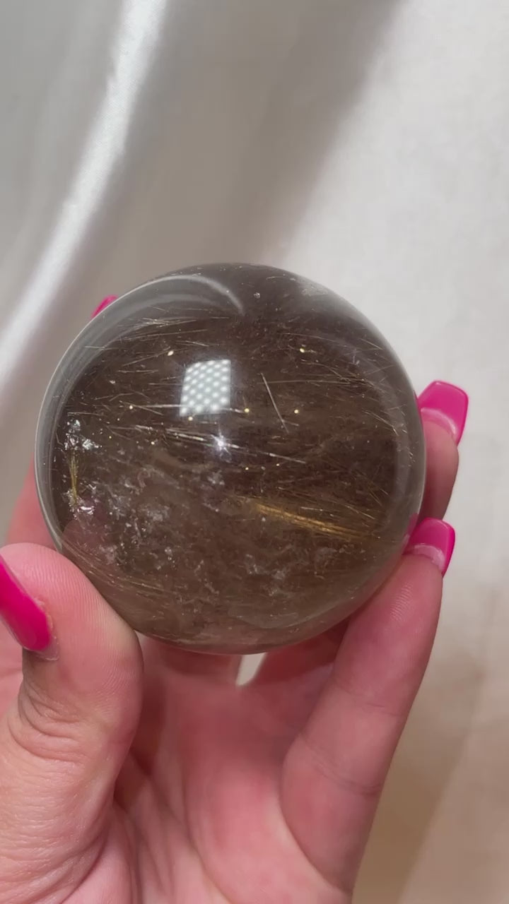 1- 60mm Smoky Gold Rutile Quartz sphere