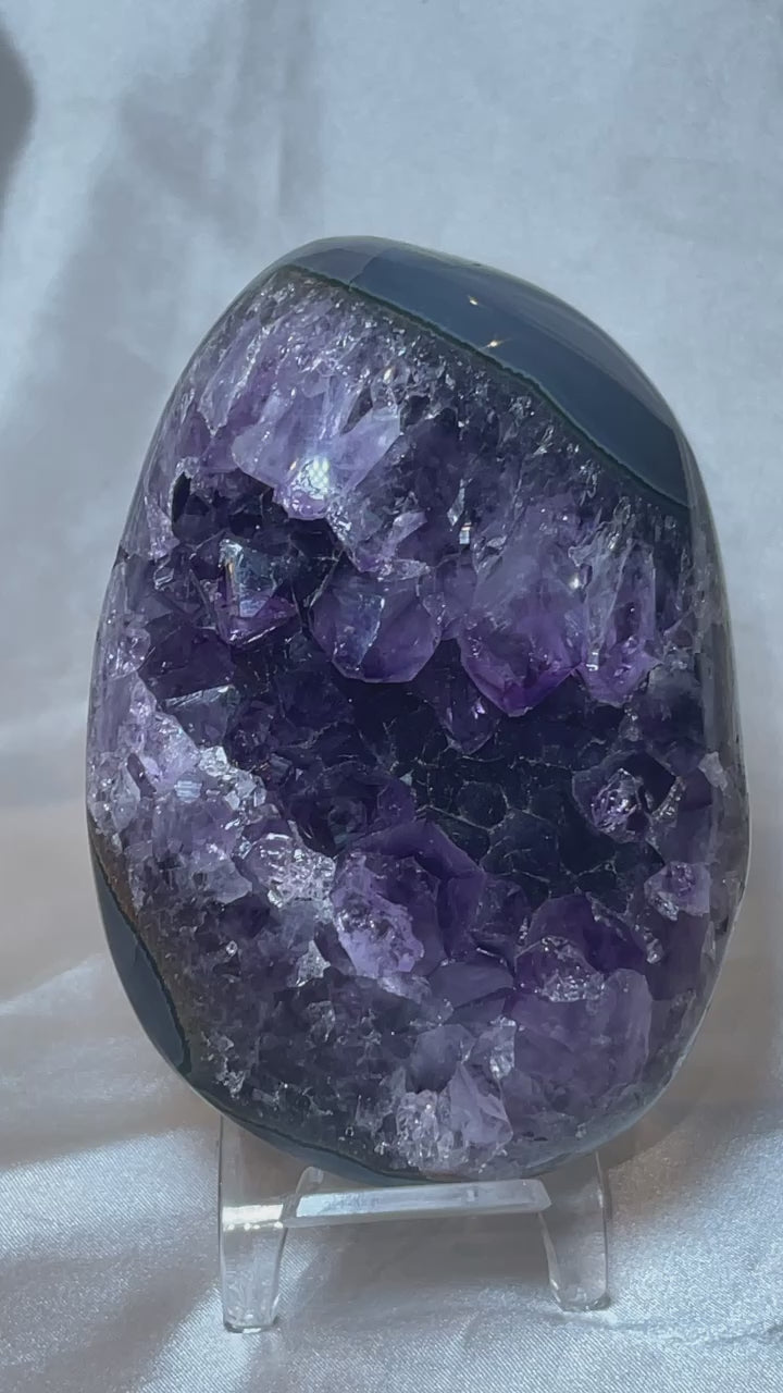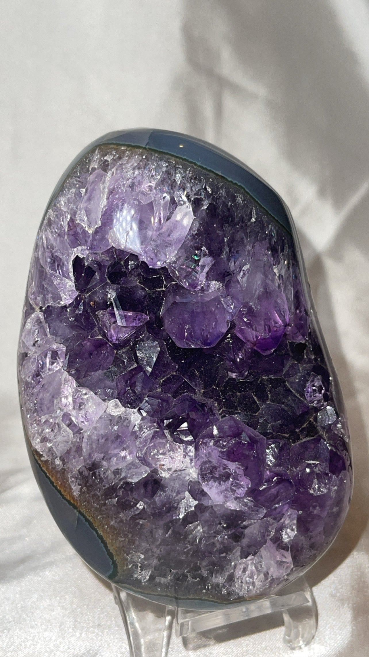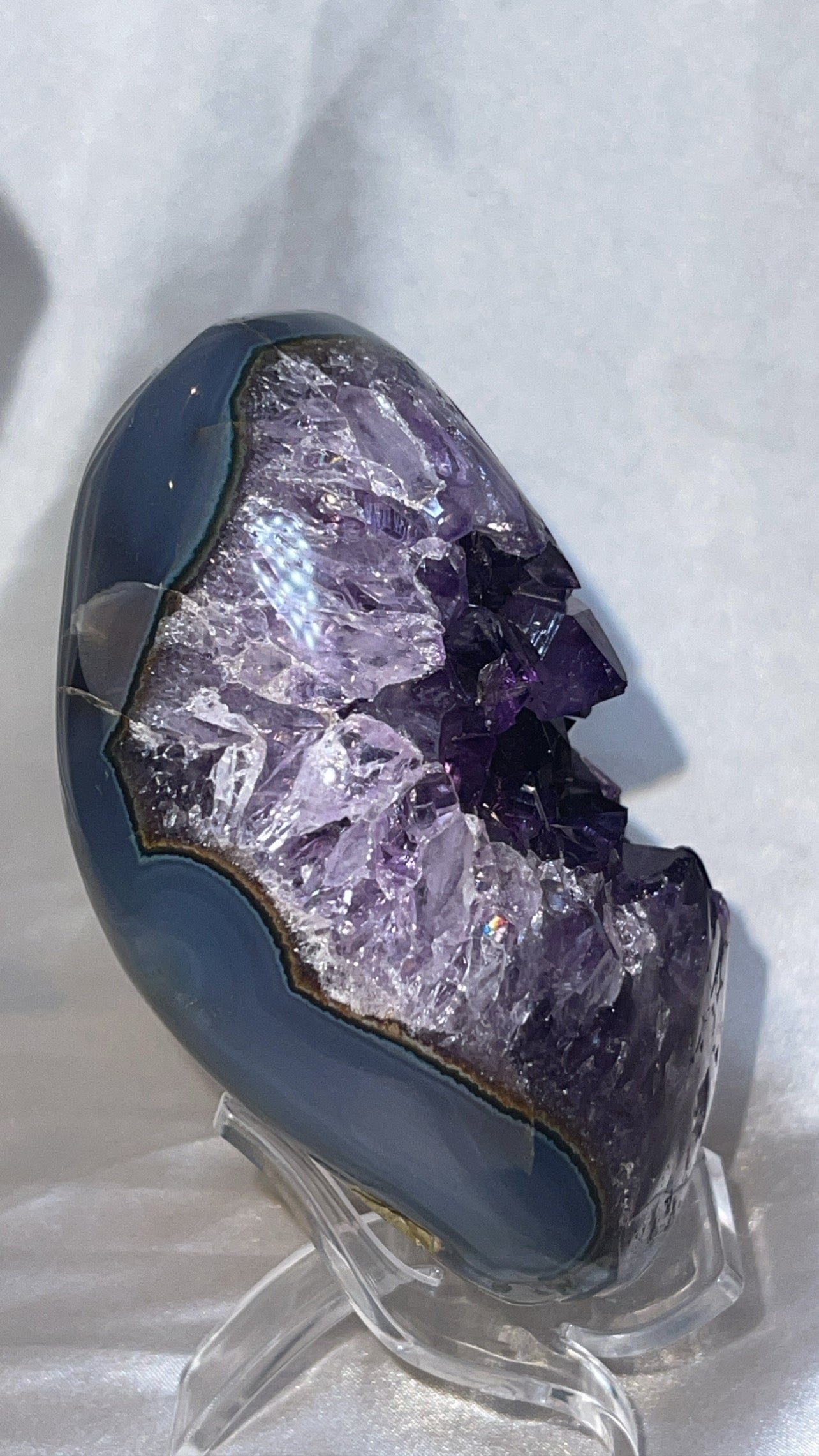 1- semi polished high quality amethyst agate freeform (comes with a stand)